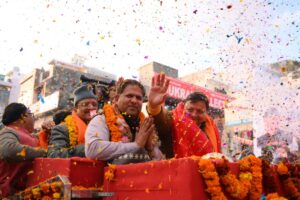 इसके लिए केन्द्र और प्रदेश में भाजपा की सरकार के बाद नगर निगमों और निकायों में भी भाजपा की सरकार बनना जरूरी है। इस बार के चुनाव में एक ओर भाजपा की सरकार है जो संकल्प को पूरा करती है और अपना रिपोर्ट कार्ड भी जनता के सामने रखती है, दूसरी ओर कांग्रेस है जो हमेशा कागजों पर योजनाएं बनाकर जनता की गाढ़ी कमाई से अपनी तिजोरियां भरने का काम करती आयी है। सीएम धामी ने कहा कि ट्रिपल इंजन की सरकार बनाओ मैं वादा करता हूं कि विकास में कोई कमी नहीं आने दूंगा। रोड शो भाजपा जिलाध्यक्ष कमल जिंदल, पुष्कर सिंह काला, तरूण दत्ता, भारत भूषण चुघ, अमित नारंग क के दास, हिमांशु शुक्ला, गजेन्द्र प्रजापति, सुनील ठुकराल, धर्म सिंह कोली, अनिल चौहान, ध्ीरेन्द्र मिश्रा, उपेन्द्र चौध्री, प्रीत ग्रोवर, सुरेश कोली, पूर्व मेयर रामपाल सिह, प्रमोद शर्मा सहित हजारों भाजपाई शामिल थे।
